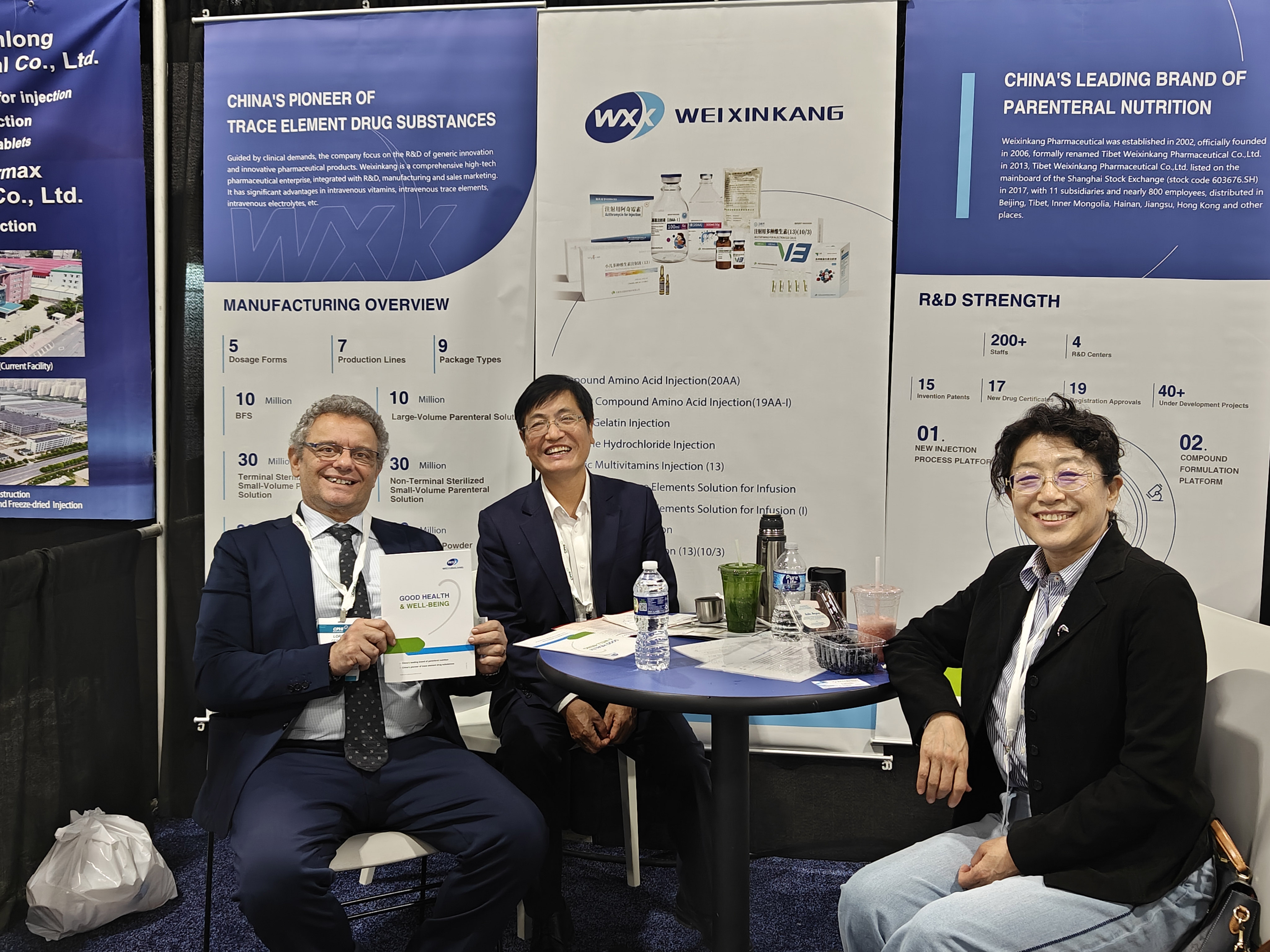 衛(wèi)信康國際業(yè)務(wù)團(tuán)隊(duì)攜多種維生素注射液(13)(10/3)、小兒多種維生素注射液(13)、多種微量元素注射液、復(fù)方氨基酸注射液(20AA)、氯化鋅、亞硒酸鈉等公司制劑與原料藥領(lǐng)域核心產(chǎn)品首次參加北美醫(yī)藥展會(huì),與制藥行業(yè)的專業(yè)人士和潛在合作伙伴深入交流,探討國際化業(yè)務(wù)合作新機(jī)遇。