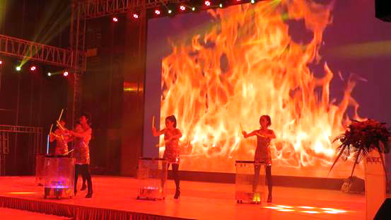 年會(huì)開始在下午2點(diǎn)整,隨著陳總簡(jiǎn)潔的開幕詞,《中國(guó)龍》水鼓舞點(diǎn)燃了現(xiàn)場(chǎng)火烈的氣氛,那激情四射的水花隨著燈光變換出五顏六色的光,動(dòng)感的節(jié)奏,成為晚會(huì)一個(gè)紅紅火火的開始。