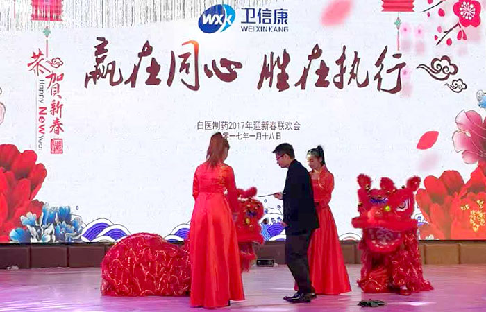 晚宴時分,總部張總攜衛(wèi)信康管理團隊到臺前邀大家共同舉杯,翁總、陳總等公司領(lǐng)導(dǎo)也為大家獻上新春賀詞,本次會議在活躍的氛圍中取得了圓滿成功。此次晚會不僅對衛(wèi)信康子公司白醫(yī)制藥2016年的整體工作進行了總結(jié),同時對2017年的工作戰(zhàn)略進行了初步規(guī)劃,為白醫(yī)制藥新的一年工作帶來了全新的開始。