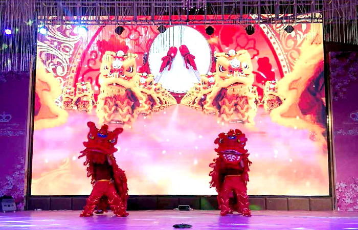 隨著視頻祝福的開場,公司董事長張總為火紅的兩只睡獅朱砂點睛,睡獅頓時活靈活現(xiàn)氣勢如虹,雙目急瞪邁開步伐,伴著清脆的鼓聲,磅礴有力的舞動了起來,拉開了白醫(yī)制藥2017年主題年會的帷幕。